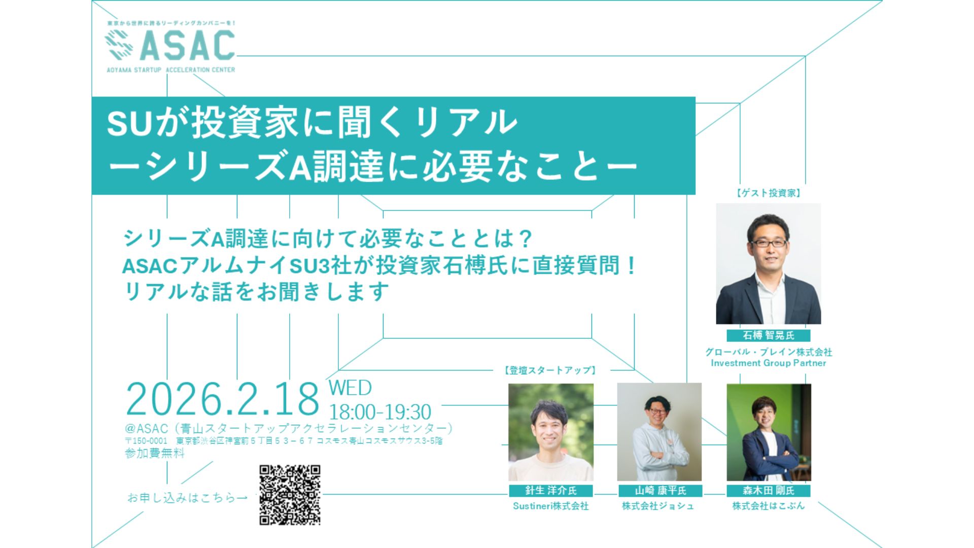 2026年2月18日(水)、東京都が主催するASAC(青山スタートアップアクセラレーションセンター)における『シリーズA調達を目指すスタートアップ必見!トークイベント「SUが投資家に聞くリアルーシリーズA調達に必要なこと […]